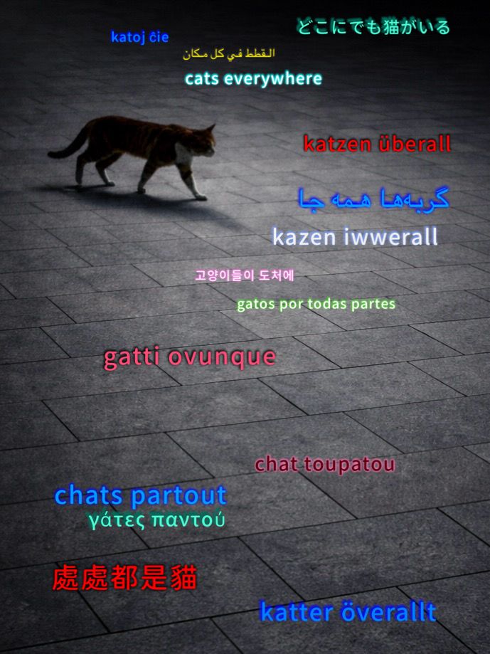 As I absentmindedly ruminated about my latest cat encounters, Claire Fontaine’s “Foreigners Everywhere” lit up my hair follicles. I ordered my second Uber of the evening and offered a ride to a random couple who agreed to cancel their own Uber to join my car.
